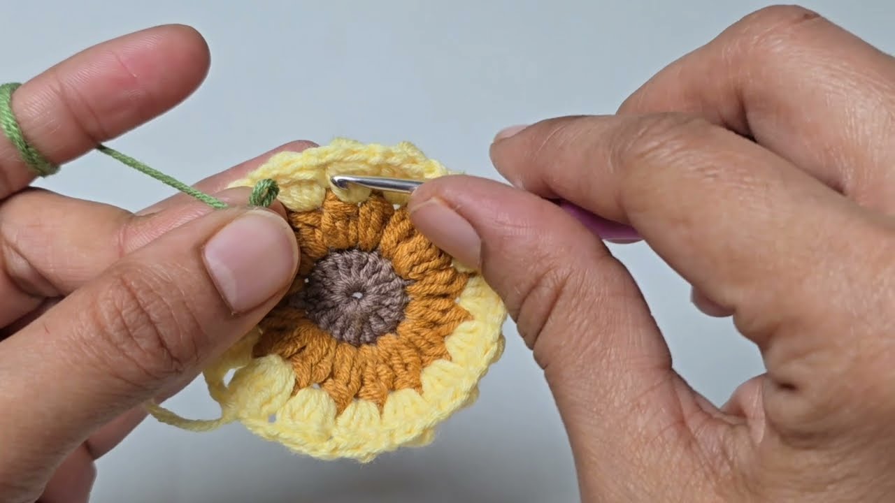 - Fasten Off: Cut your yarn and fasten off. This completes the dark center of your sunflower.