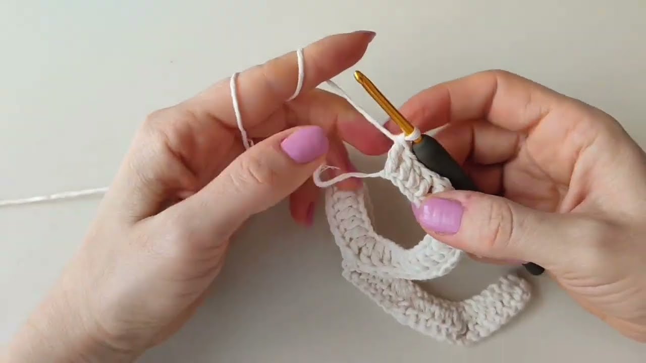 After the ribbing, continue working upward across the full width (back + front panels) in your stitch pattern (e.g. alternations of dc / hdc rows, or a textured stitch).