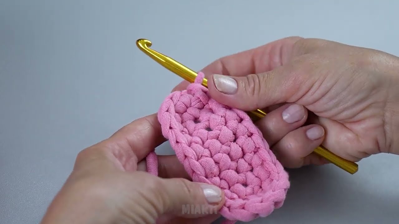 ➡️ Repeat rows until your rectangle is twice as tall as you want the bag (you’ll fold it in half).