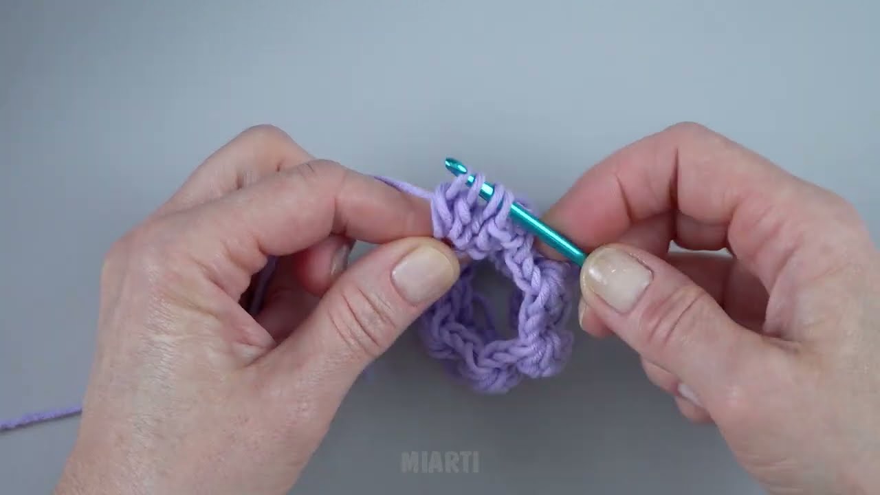 The Popcorn Stitch creates a textured “bobbly” pattern that pops out from the fabric. It’s created by working 5 double crochets into the same stitch, removing the hook, reinserting it into the first DC, and pulling the loop through.