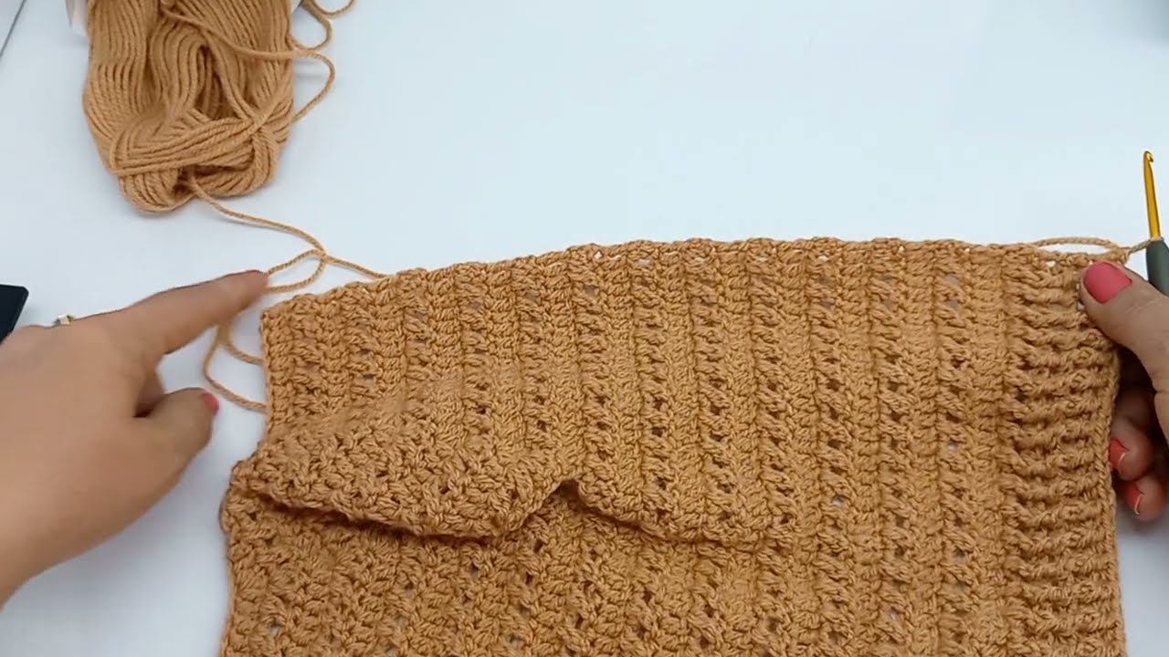 Add 1–2 dc at the start and end of each row to form the front opening and button band.
