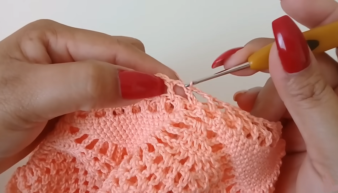 Optional: small ruffle around armhole using (sc, ch 2) repeat.