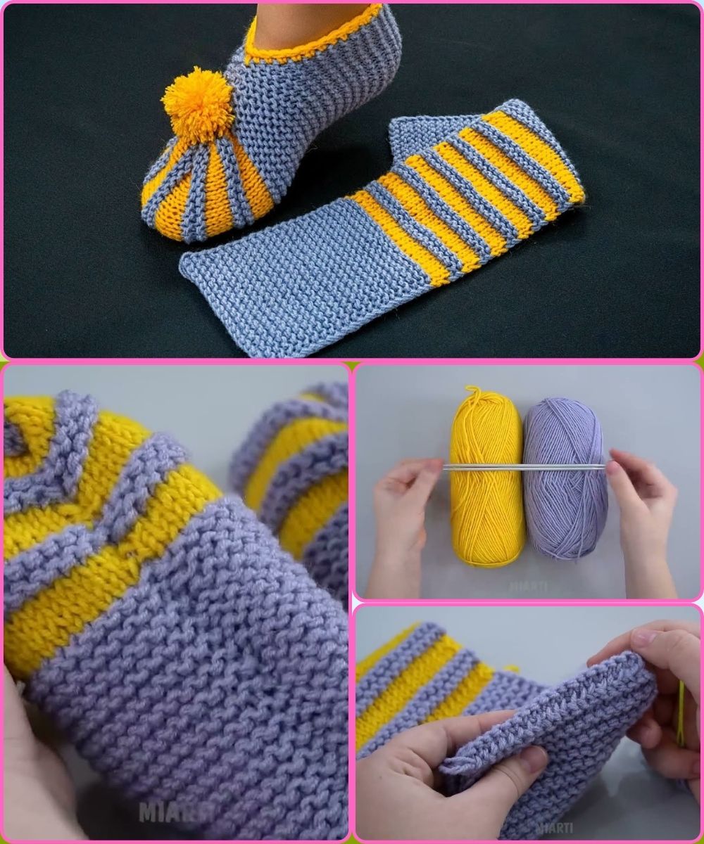 🧶 How to Make Simple Knitted Slippers – A Detailed Step-by-Step Tutorial