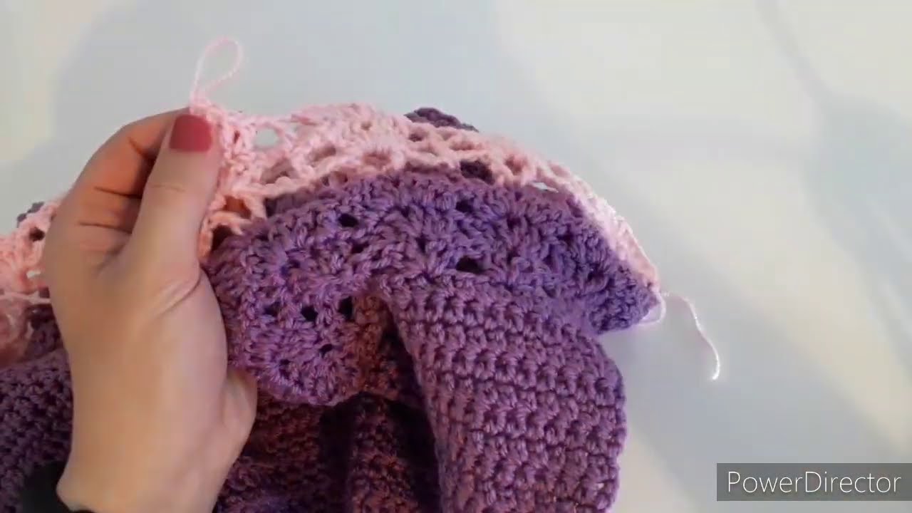 Crochet 4–6 rows using a longer stitch (dc or shell stitch). This forms a subtle ruffle or extended layer.