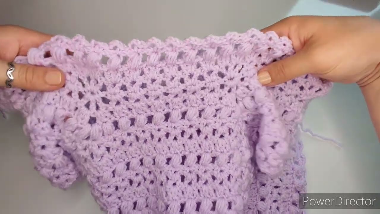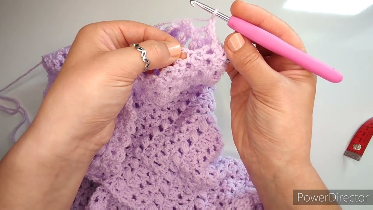 At the neckline (when front reaches 10–12 inches from bottom), split for the neck by working each side separately.