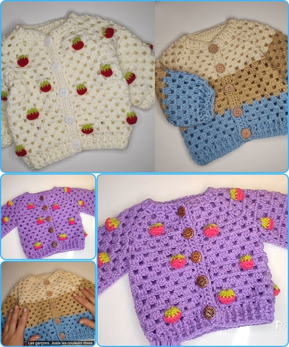 🍓 How to Crochet a Baby Cardigan – Strawberry Design