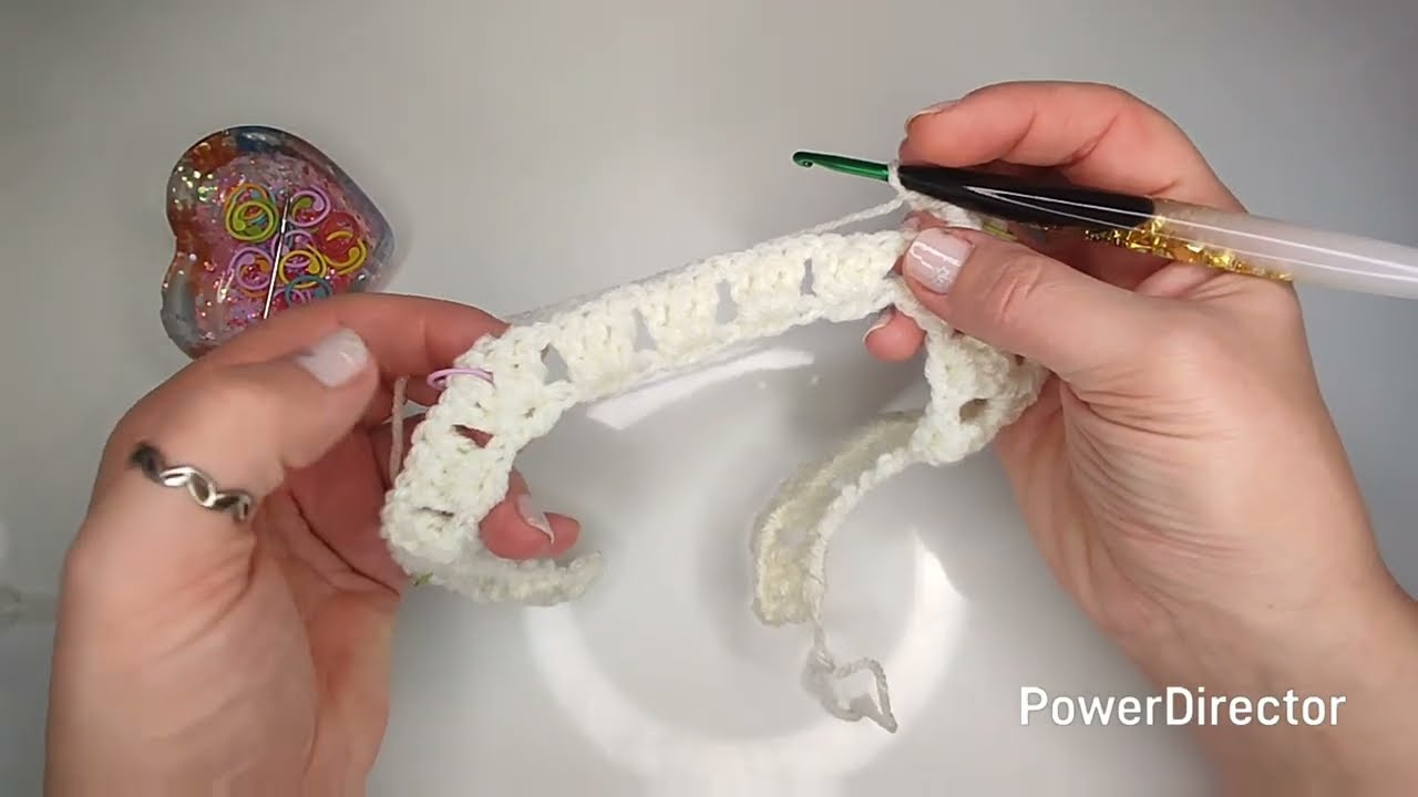 Row 1: dc in 4th ch from hook, dc across, ch 2, turn.