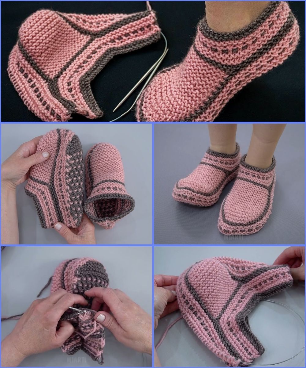 🧶 Slippers on 2 Knitting Needles – No Seam on the Sole