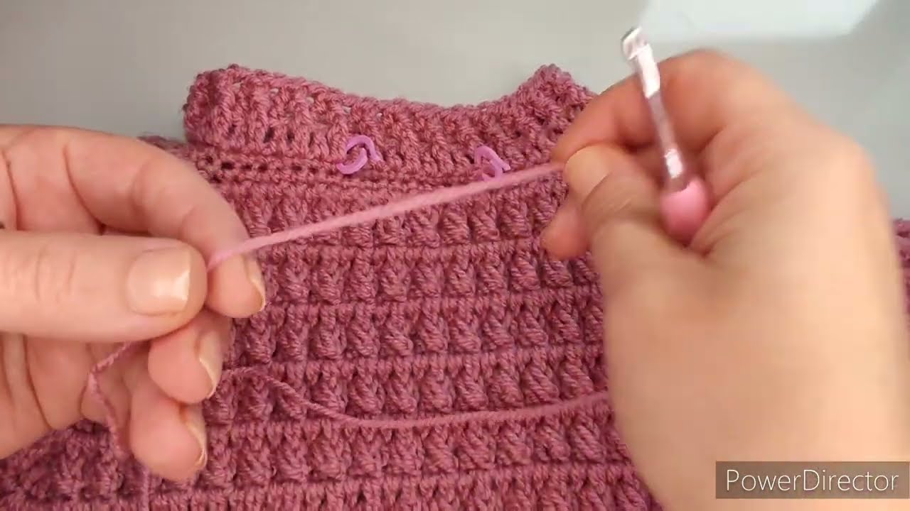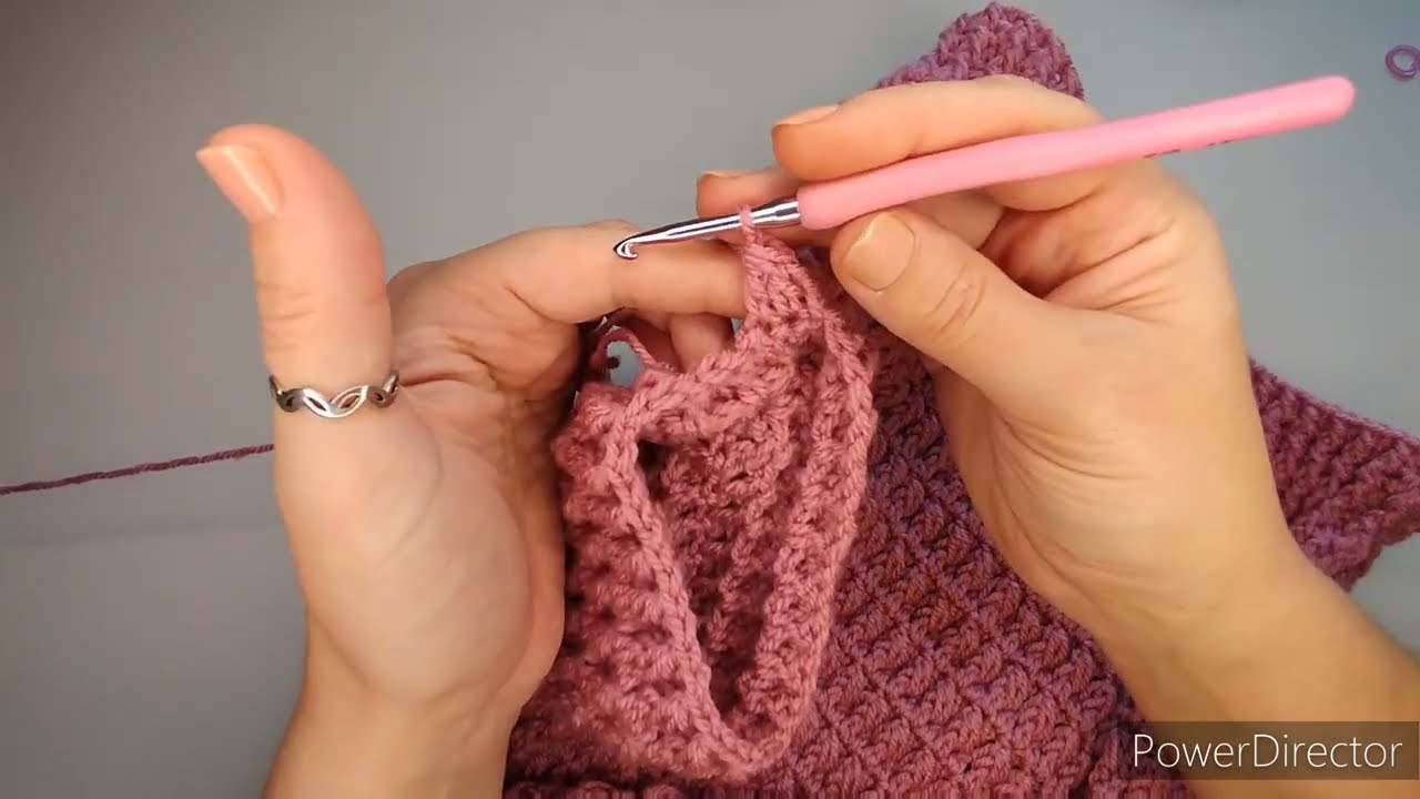 The sweater uses basic crochet stitches.