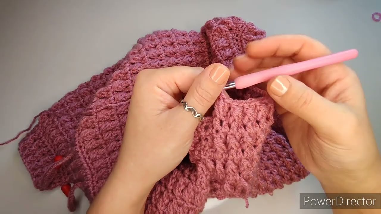 Continue rows of front post and back post double crochet for about 4–6 rows.